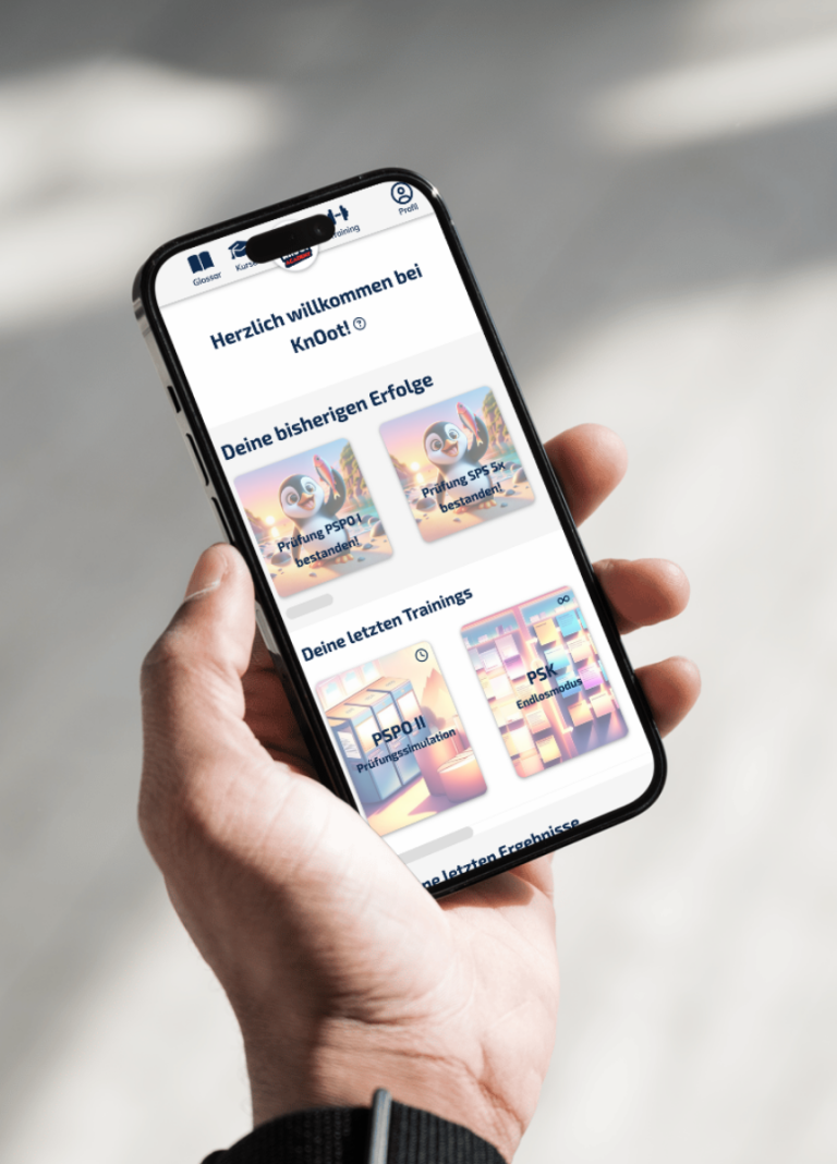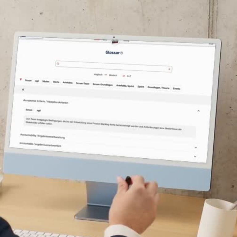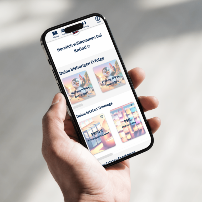 Die KnOot Lern-App begleitet dich durch deine Scrum-Weiterbildung: mit Prüfungssimulationen, Endlos- Modus und einem Glossar der wichtigsten Begriffe im Scrum Framework.